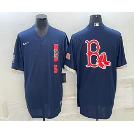 >Men's Boston Red Sox Big Logo Navy Blue 2021 MLB All Star Stitched Cool Base Nike Jersey