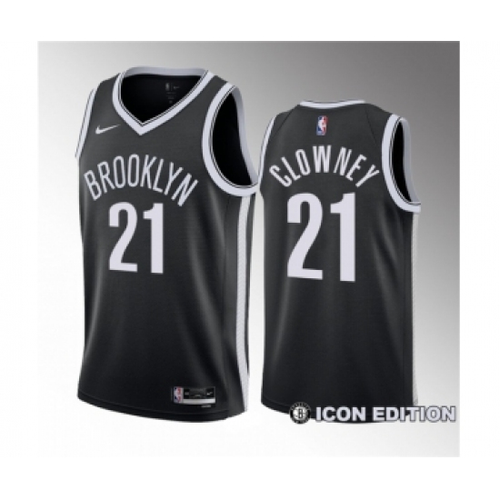 Men's Brooklyn Nets #21 Noah Clowney Black 2023 Draft Icon Edition Stitched Basketball Jersey