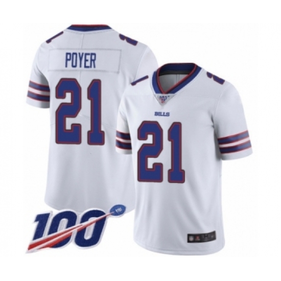 >Men's Buffalo Bills #21 Jordan Poyer White Vapor Untouchable Limited Player 100th Season Football Jersey