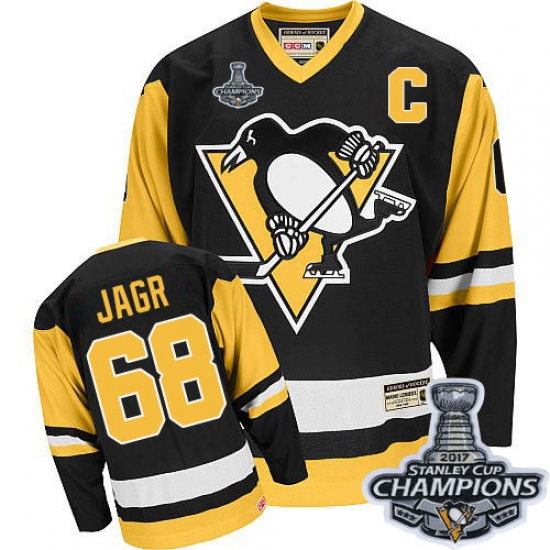 Home>NHL>Pittsburgh Penguins>Jaromir Jagr>Men's CCM Pittsburgh Penguins #68 Jaromir Jagr Authentic Black Throwback 2017 Stanley Cup Champions NHL Jersey