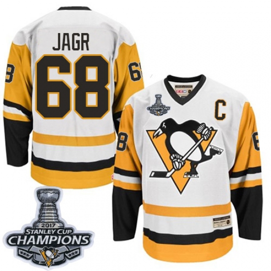 Men's CCM Pittsburgh Penguins #68 Jaromir Jagr Premier White Throwback 2017 Stanley Cup Champions NHL Jersey