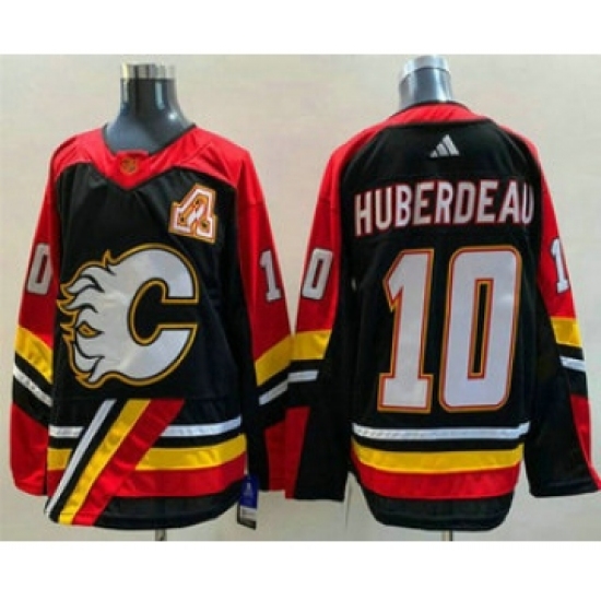 >Men's Calgary Flames #10 Jonathan Huberdeau Black 2022 Reverse Retro Stitched Jersey