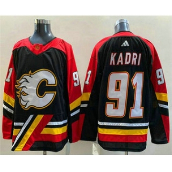 Men's Calgary Flames #91 Nazem Kadri Black 2022-23 Reverse Retro Stitched Jersey