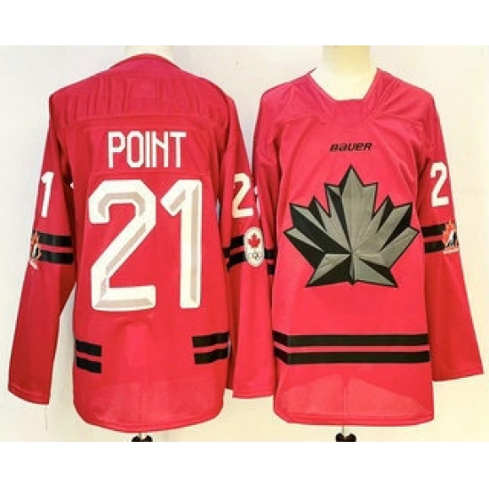 >Men's Canada Hockey #21 Brayden Point Red Stitched Jersey
