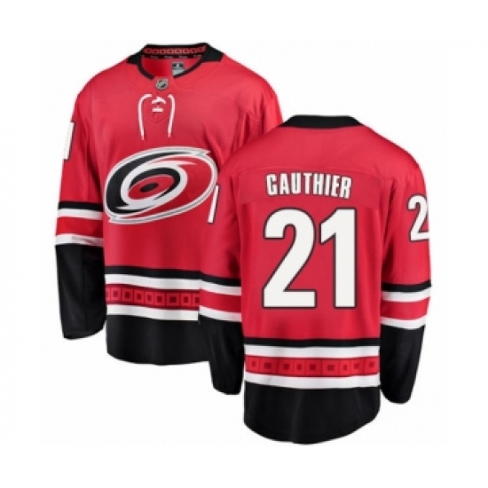 Men's Carolina Hurricanes #21 Julien Gauthier Authentic Red Home Fanatics Branded Breakaway NHL Jersey