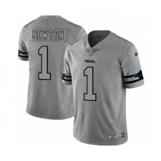 Men's Carolina Panthers #1 Cam Newton Limited Gray Team Logo Gridiron Football Jersey