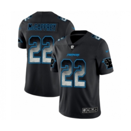 >Men's Carolina Panthers #22 Christian McCaffrey Black Smoke Fashion Limited Jersey