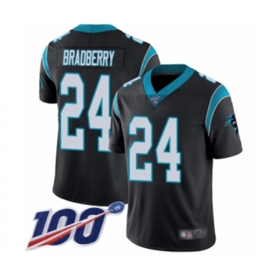 >Men's Carolina Panthers #24 James Bradberry Black Team Color Vapor Untouchable Limited Player 100th Season Football Jersey