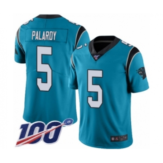 >Men's Carolina Panthers #5 Michael Palardy Limited Blue Rush Vapor Untouchable 100th Season Football Jersey
