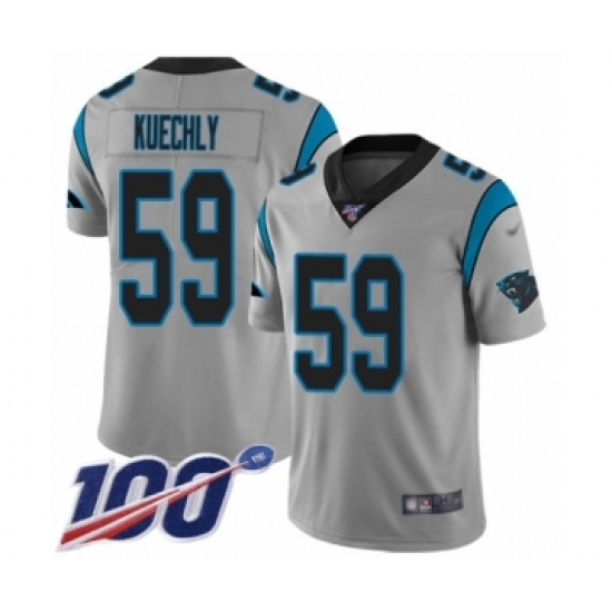 Men's Carolina Panthers #59 Luke Kuechly Silver Inverted Legend Limited 100th Season Football Jersey