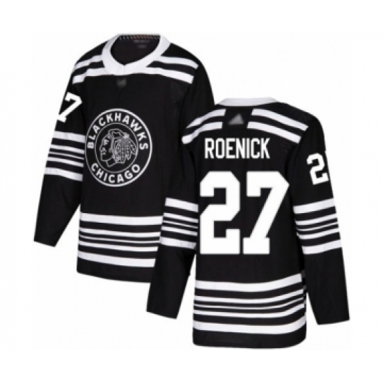 Men's Adidas Chicago Blackhawks #27 Jeremy Roenick Authentic Black 1917-2017 100th Anniversary NHL Jersey