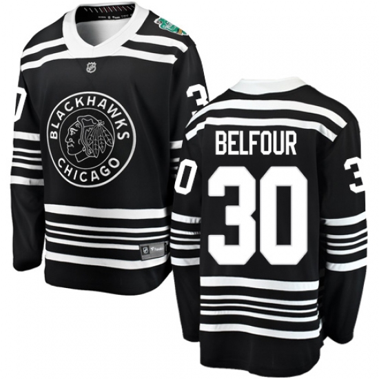 >Men's Chicago Blackhawks #30 ED Belfour Black 2019 Winter Classic Fanatics Branded Breakaway NHL Jersey