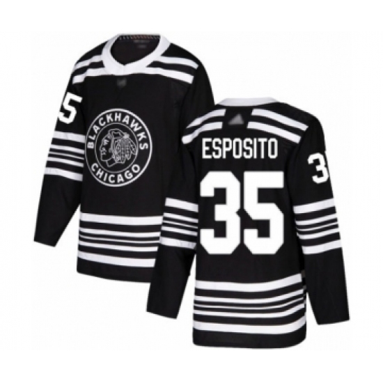 Women's Adidas Chicago Blackhawks #35 Tony Esposito Authentic Black 2019 Winter Classic NHL Jersey