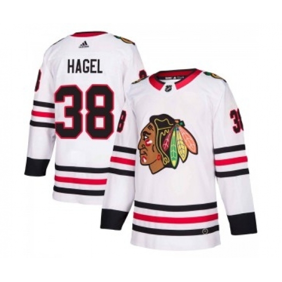 >Men's Chicago Blackhawks #38 Brandon Hagel Adidas Authentic Away White Jersey