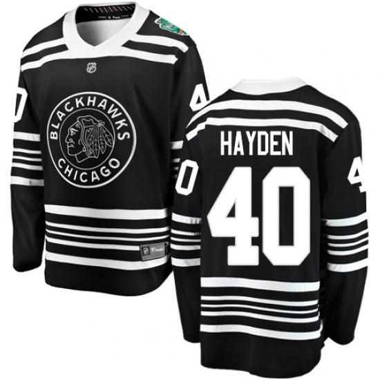 >Men's Chicago Blackhawks #40 John Hayden Black 2019 Winter Classic Fanatics Branded Breakaway NHL Jersey