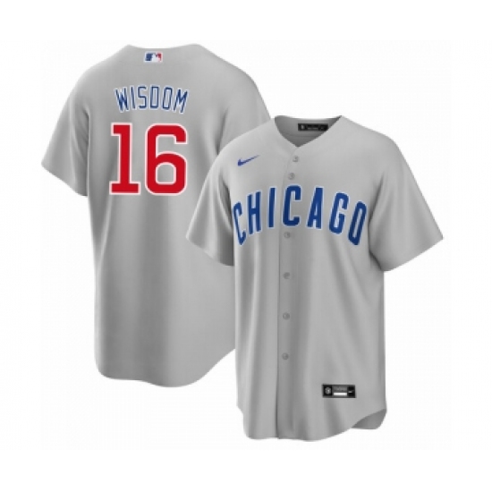 >Men's Chicago Cubs #16 Patrick Wisdom Gray Cool Base Stitched Baseball Jersey