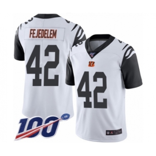 >Men's Cincinnati Bengals #42 Clayton Fejedelem Limited White Rush Vapor Untouchable 100th Season Football Jersey
