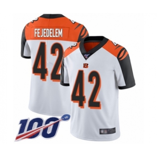 >Men's Cincinnati Bengals #42 Clayton Fejedelem White Vapor Untouchable Limited Player 100th Season Football Jersey