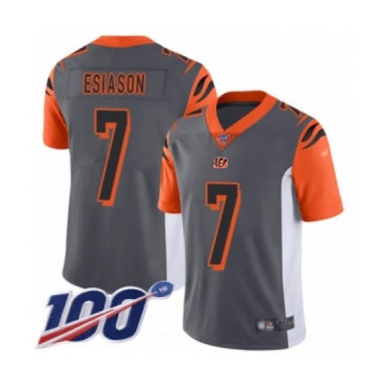 >Men's Cincinnati Bengals #7 Boomer Esiason Limited Silver Inverted Legend 100th Season Football Jersey