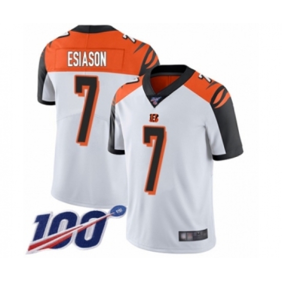 >Men's Cincinnati Bengals #7 Boomer Esiason White Vapor Untouchable Limited Player 100th Season Football Jersey