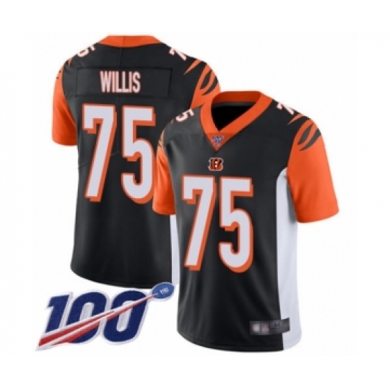 >Men's Cincinnati Bengals #75 Jordan Willis Black Team Color Vapor Untouchable Limited Player 100th Season Football Jersey