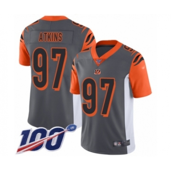 Men's Cincinnati Bengals #97 Geno Atkins Limited Silver Inverted Legend 100th Season Football Jersey