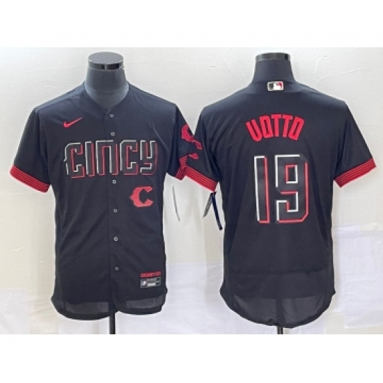 Men's Cincinnati Reds #19 Joey Votto Black 2023 City Connect Flex Base Stitched Jersey