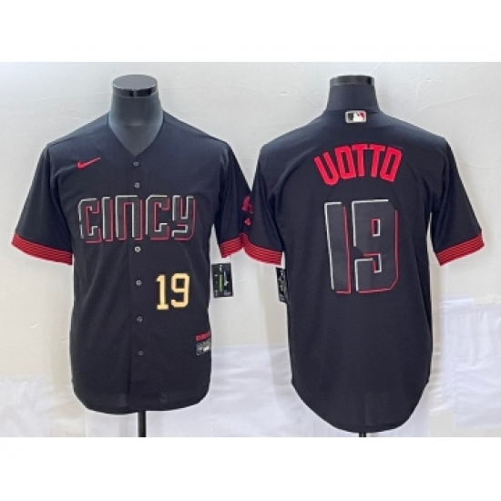 Men's Cincinnati Reds #19 Joey Votto Number Black 2023 City Connect Cool Base Stitched Jersey