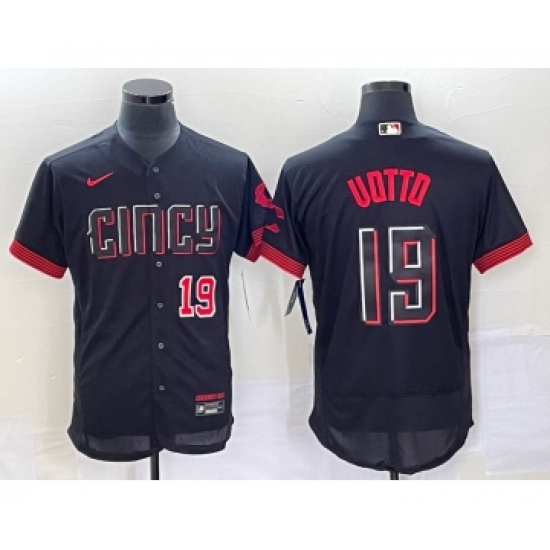 >Men's Cincinnati Reds #19 Joey Votto Number Black 2023 City Connect Flex Base Stitched Jersey 1