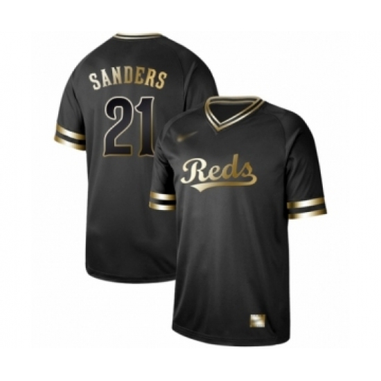 Men's Cincinnati Reds #21 Reggie Sanders Authentic Black Gold Fashion Baseball Jersey