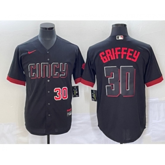 Men's Cincinnati Reds #30 Ken Griffey Jr Black 2023 City Connect Cool Base Stitched Jersey
