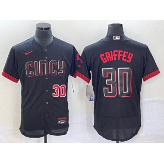 >Men's Cincinnati Reds #30 Ken Griffey Jr Number Black 2023 City Connect Flex Base Stitched Jersey 1