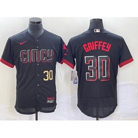 Men's Cincinnati Reds #30 Ken Griffey Jr Black 2023 City Connect Flex Base Stitched Jersey