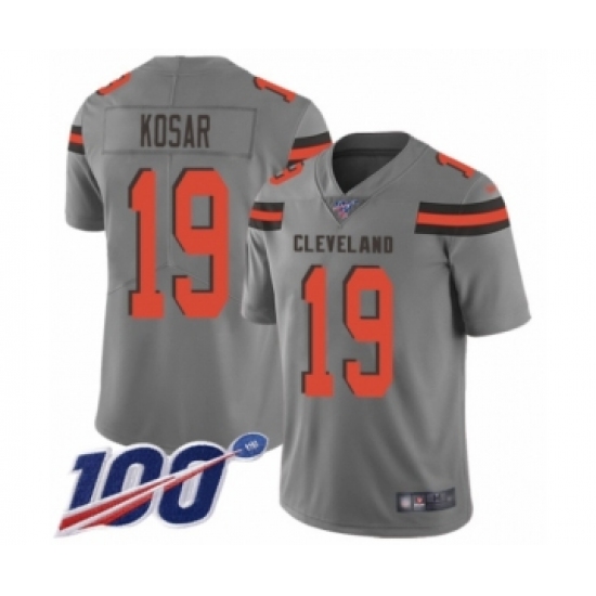 >Men's Cleveland Browns #19 Bernie Kosar Limited Gray Inverted Legend 100th Season Football Jersey