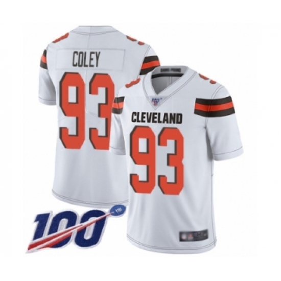 >Men's Cleveland Browns #93 Trevon Coley White Vapor Untouchable Limited Player 100th Season Football Jersey