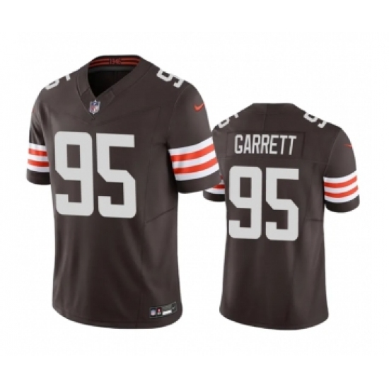 >Men's Cleveland Browns #95 Myles Garrett Brown 2023 F.U.S.E. Vapor Untouchable Limited Stitched Jersey