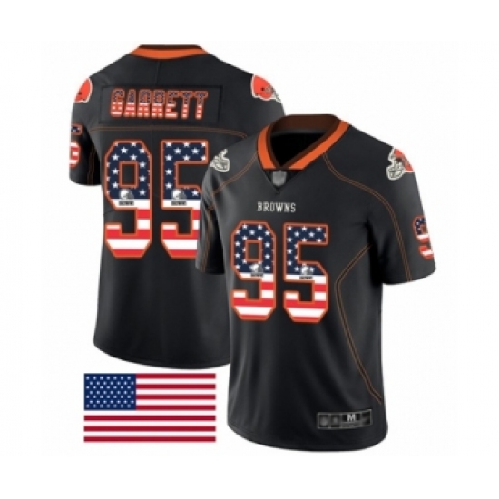 >Men's Cleveland Browns #95 Myles Garrett Limited Black Rush USA Flag Football Jersey