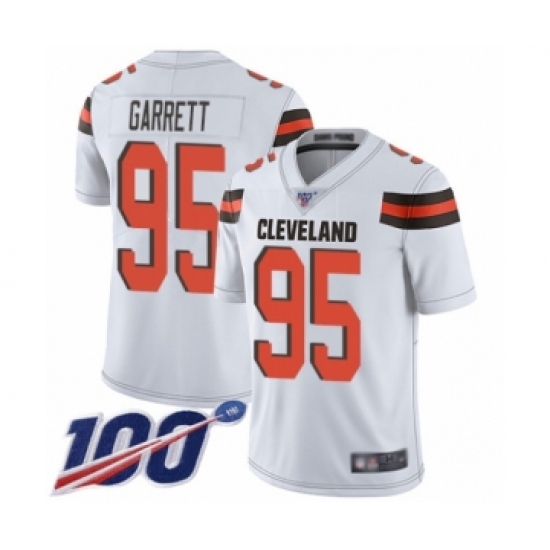 Men's Cleveland Browns #95 Myles Garrett White Vapor Untouchable Limited Player 100th Season Football Jersey