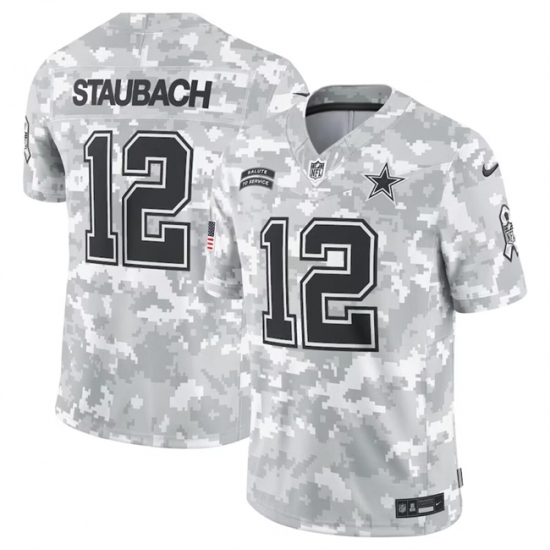 >Men's Dallas Cowboys #12 Roger Staubach 2024 Arctic Camo Salute To Service Limited Stitched Football Jersey