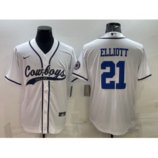 Men's Dallas Cowboys #21 Ezekiel Elliott White With Patch Cool Base Stitched Baseball Jersey