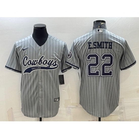 Men's Dallas Cowboys #22 Emmitt Smith Grey Gridiron With Patch Cool Base Stitched Baseball Jersey