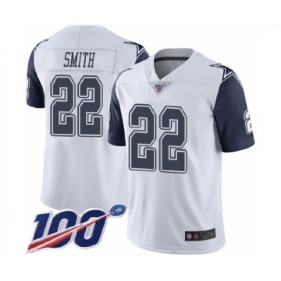 >Men's Dallas Cowboys #22 Emmitt Smith Limited White Rush Vapor Untouchable 100th Season Football Jersey
