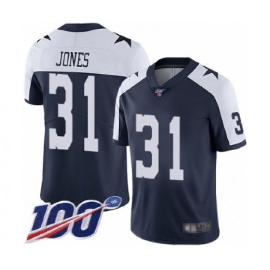 Men's Dallas Cowboys #31 Byron Jones Navy Blue Throwback Alternate Vapor Untouchable Limited Player 100th Season Football Jersey