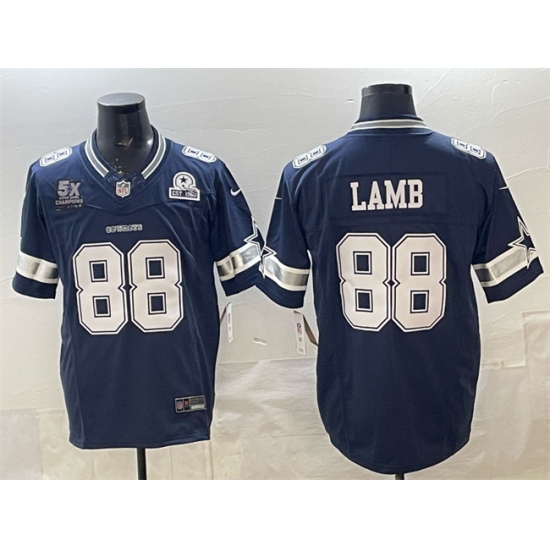 >Men's Dallas Cowboys #88 CeeDee Lamb Navy F.U.S.E. With 5x Super Bowl Champions & Established In 1960 Vapor Limited Stitched Football Jersey