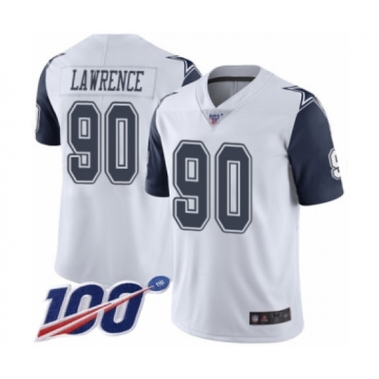 >Men's Dallas Cowboys #90 DeMarcus Lawrence Limited White Rush Vapor Untouchable 100th Season Football Jersey