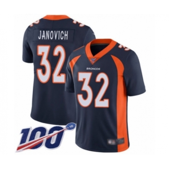 >Men's Denver Broncos #32 Andy Janovich Navy Blue Alternate Vapor Untouchable Limited Player 100th Season Football Jersey