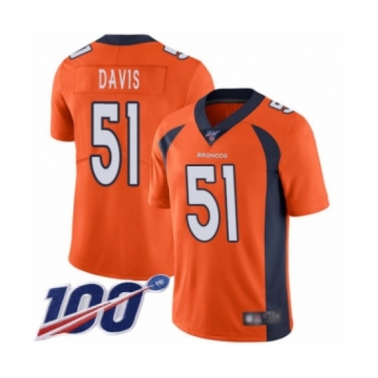 Men's Denver Broncos #51 Todd Davis Orange Team Color Vapor Untouchable Limited Player 100th Season Football Jersey