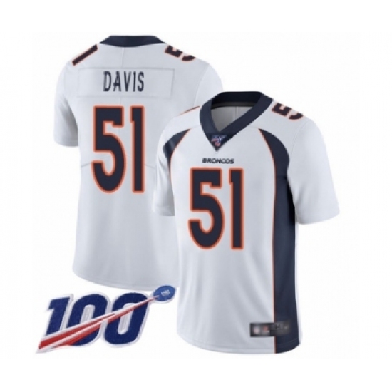Men's Denver Broncos #51 Todd Davis White Vapor Untouchable Limited Player 100th Season Football Jersey