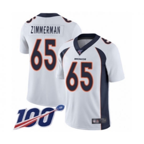 >Men's Denver Broncos #65 Gary Zimmerman White Vapor Untouchable Limited Player 100th Season Football Jersey