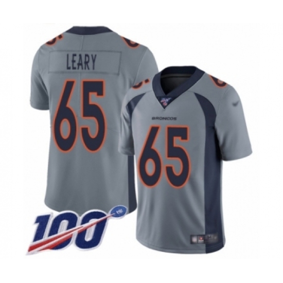 >Men's Denver Broncos #65 Ronald Leary Limited Silver Inverted Legend 100th Season Football Jersey